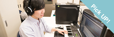 PCを使った作曲やアレンジのプロはもちろん、クリエイターやアーティストに興味がある人にもピッタリ。PCとソフトを駆使して作曲・演奏を行うDAWをはじめ、打ち込み作業に必要なキーボード演奏の基本技術、編曲やプリプロ、レコーディング時のプロデュースなども学べます。