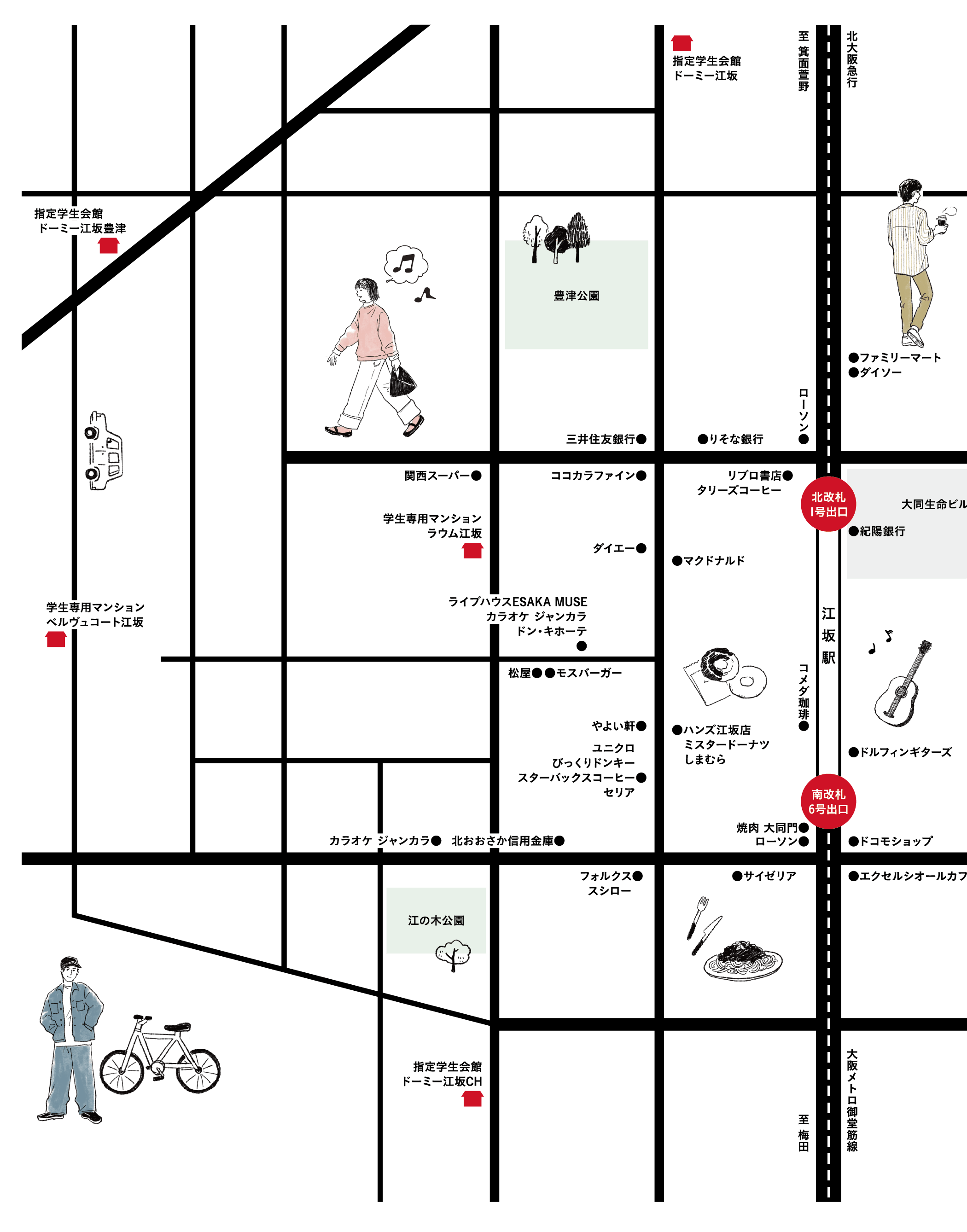 - ■ JR・新幹線「新大阪」駅で大阪メトロ御堂筋線に乗り換えて「江坂」駅まで約4分