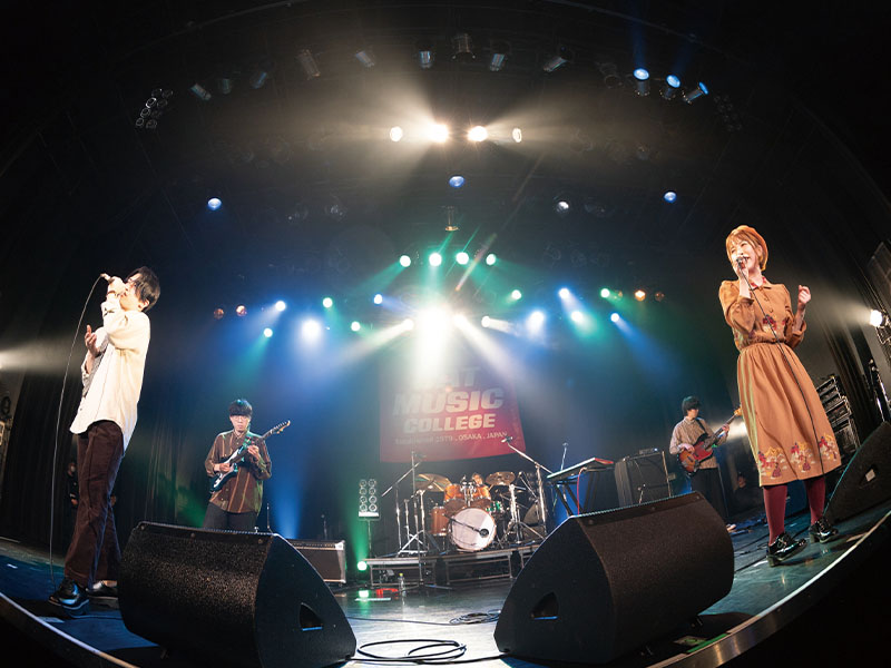 総合音楽コースでは、ボーカル、ギター、ベース、ドラムいずれかの演奏技術とともに、コンサート音響、照明、レコーディングなど裏方の仕事についても幅広く学ぶことができます。