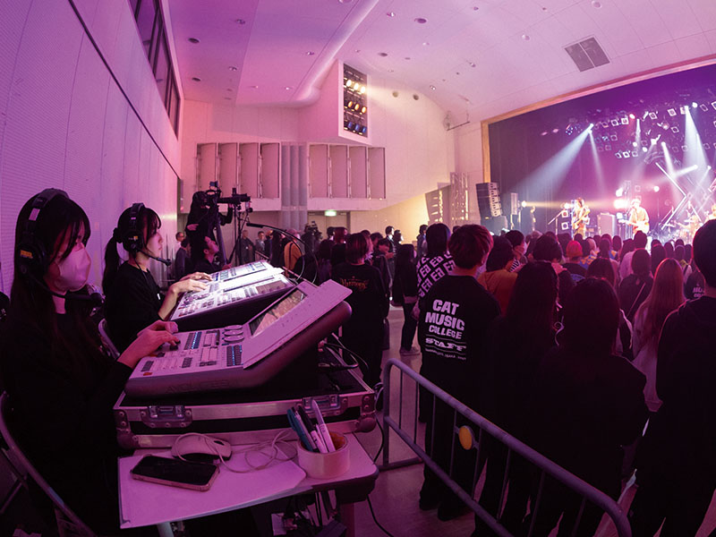 総合スタッフコースでは、音響、照明、映像、制作など、音楽業界のスタッフに必要な知識と技術をトータルに学びながら、イベントやライブの企画制作から舞台演出などを統括できる人材を育成します。