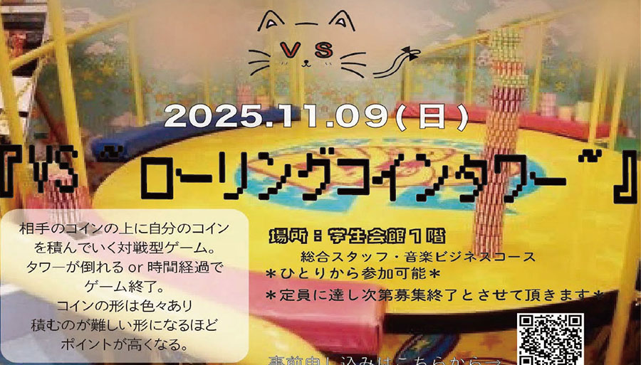 1年総スタ、音ビ合同 飛び入り可能の参加型企画「VS〜ローリングコインタワー〜」「スーパーキャットTIME」を開催します!『どんな人でも参加できる』がコンセプトです