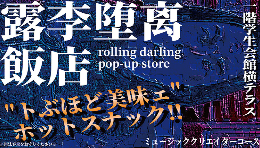 今年は「スマートかつ熱意のあるクソうめぇ飯」をモットーに、熱意爆盛りホットスナックを学生会館横のテラスにて販売させていただきます。