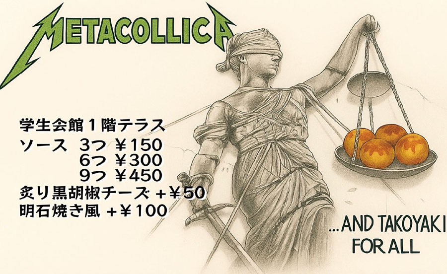 たこ焼き焼きつつ、学祭を一緒に盛り上げましょう!学生会館テラスで待ってます
