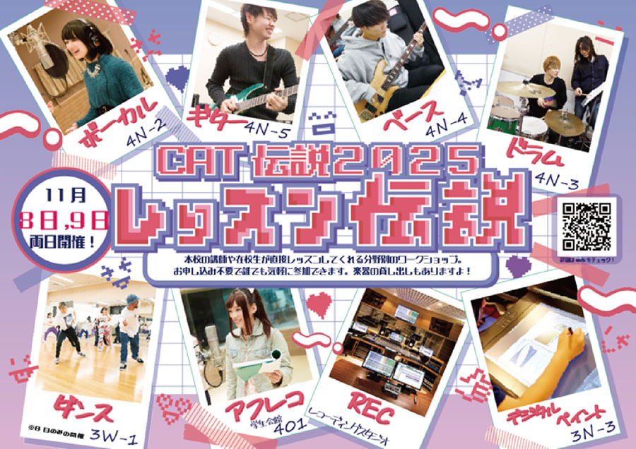 本校の講師や在校生が直接レッスンしてくれる分野別のワークショップ。