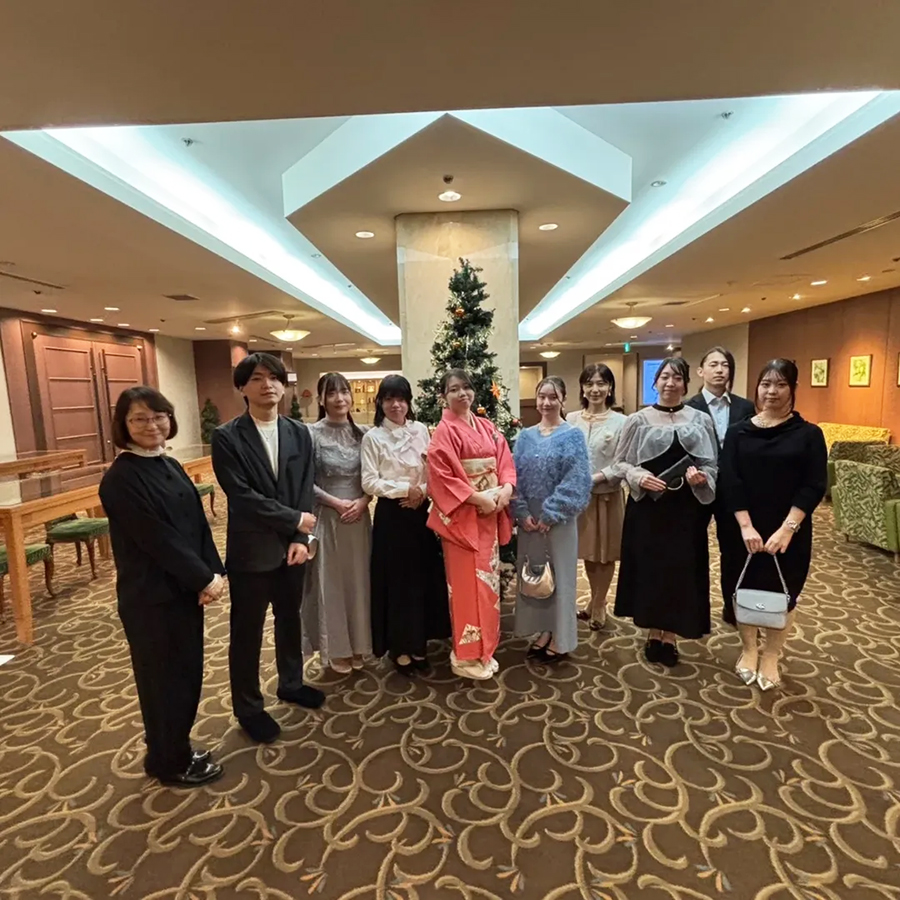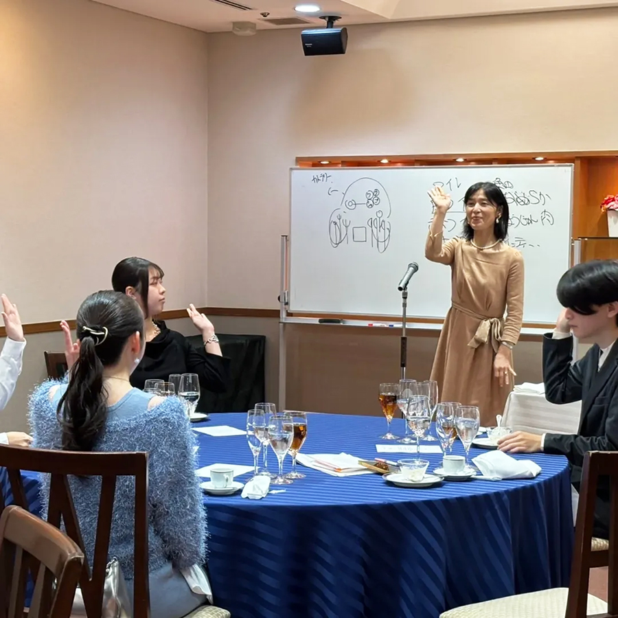 CAT TOPICS 【音楽ビジネス】「テーブルマナー講座」 作成日:2025/12/07 2年音楽ビジネスコースの学生たちはフォーマルスタイルに身を包み、「テーブルマナー講座」の課外授業で江坂東急REIホテルでフレンチフルコースをいただきました。 その後、”カジュアル”に「マネージメント」の授業を受講しています。