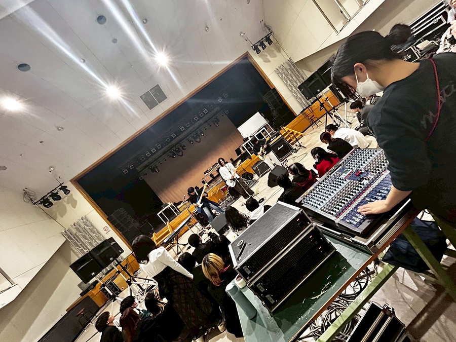 CAT TOPICS フラットライブ 作成日:2026/01/08 12/11(木)CAT HALLのフロアにてプロミュージシャンコースが企画した学内イベント「フラットライブ」を行いました! 1年、2年も織り交ざって和気あいあいとしたライブでした。 準備からバラシまで、学生が協力し合って作り上げました! 次回は3/3(火)に開催します!