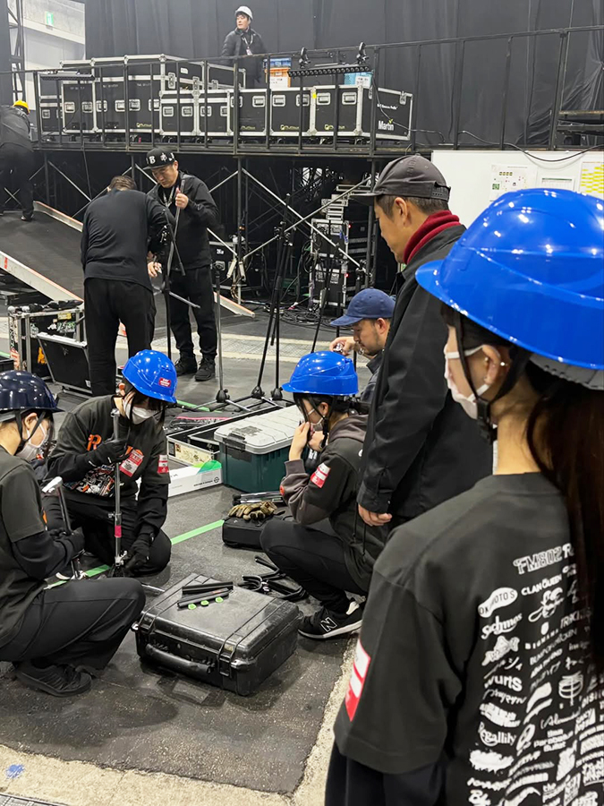 早朝から夜遅くまで長時間、緊張感ある現場で大変ですが、本番はライブを見学することもでき、貴重な経験となりました。