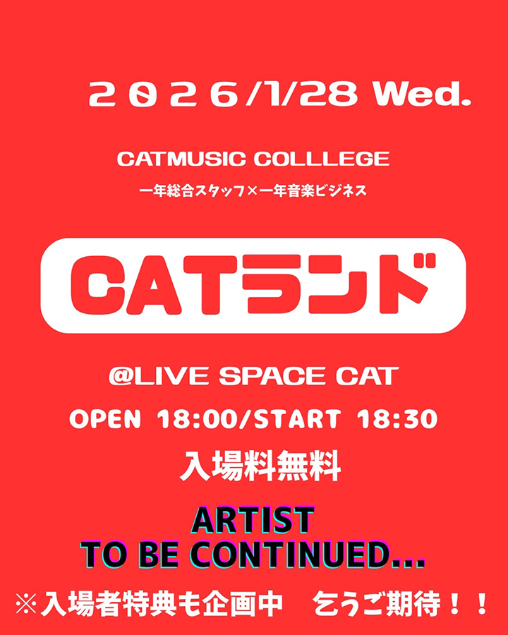 総合スタッフ1年生と音楽ビジネス1年生による後期制作企画として実施する、CAT在校生向けのライブイベント「CATランド」。