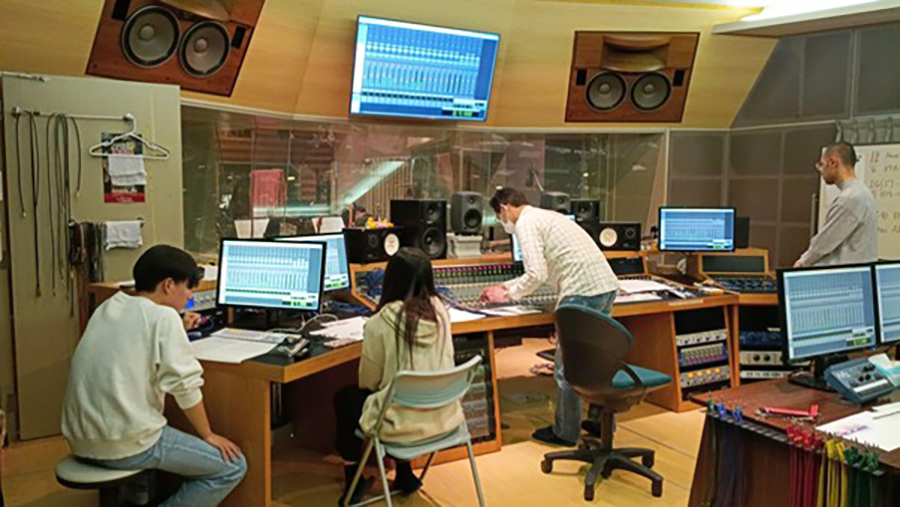 また今回は、音響エンジニアコースの学生がレコーディングのサポートとして参加してくれています。