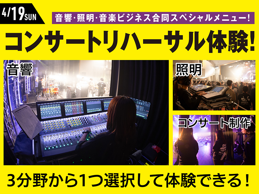 【4/19(日)オープンキャンパス】音響・照明・音楽ビジネス合同スペシャルメニュー コンサートリハーサル体験!