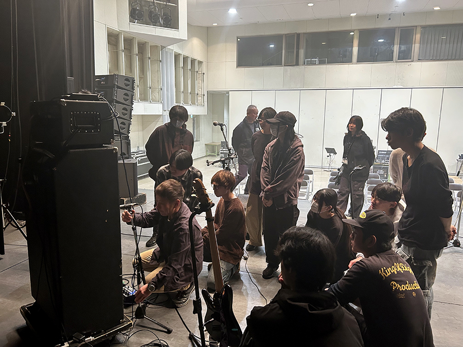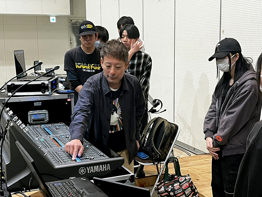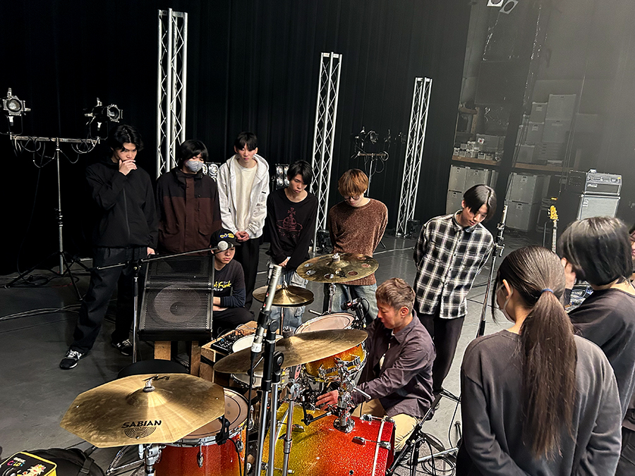 スピーカーチューニング、マイキング~楽器の音作り、バンド全体のバランスやミキシングのテクニックを丁寧に指導いただきました。