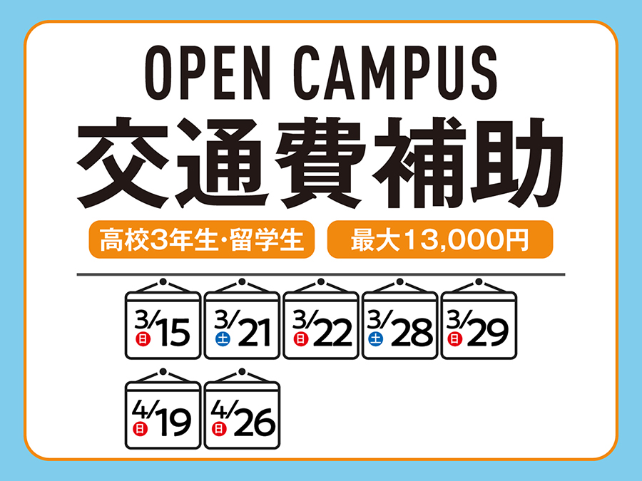 【新高校3年生限定】交通費補助制度を利用してオープンキャンパスに参加しよう!